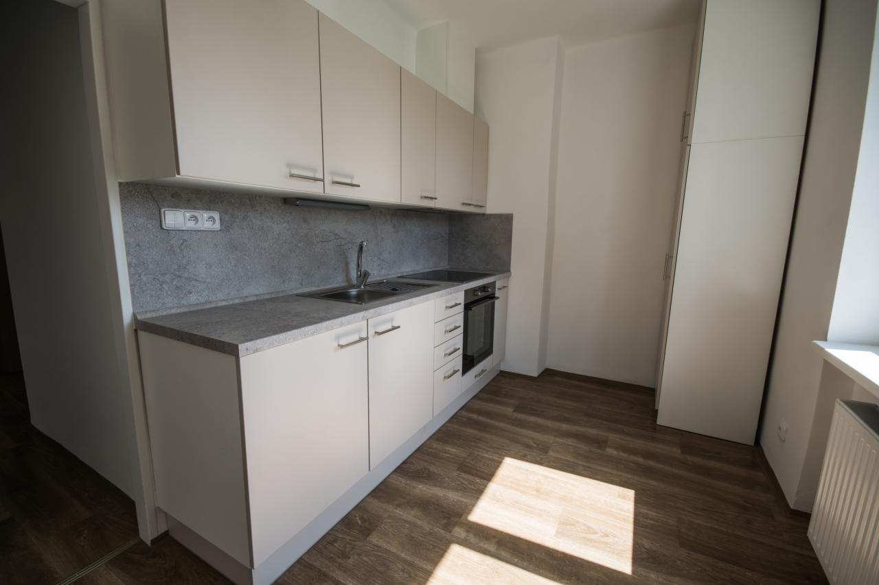 | vybavení | kuchyňská linka, varná deska el., vestavná trouba, měřiče tepla a vody, sklep |