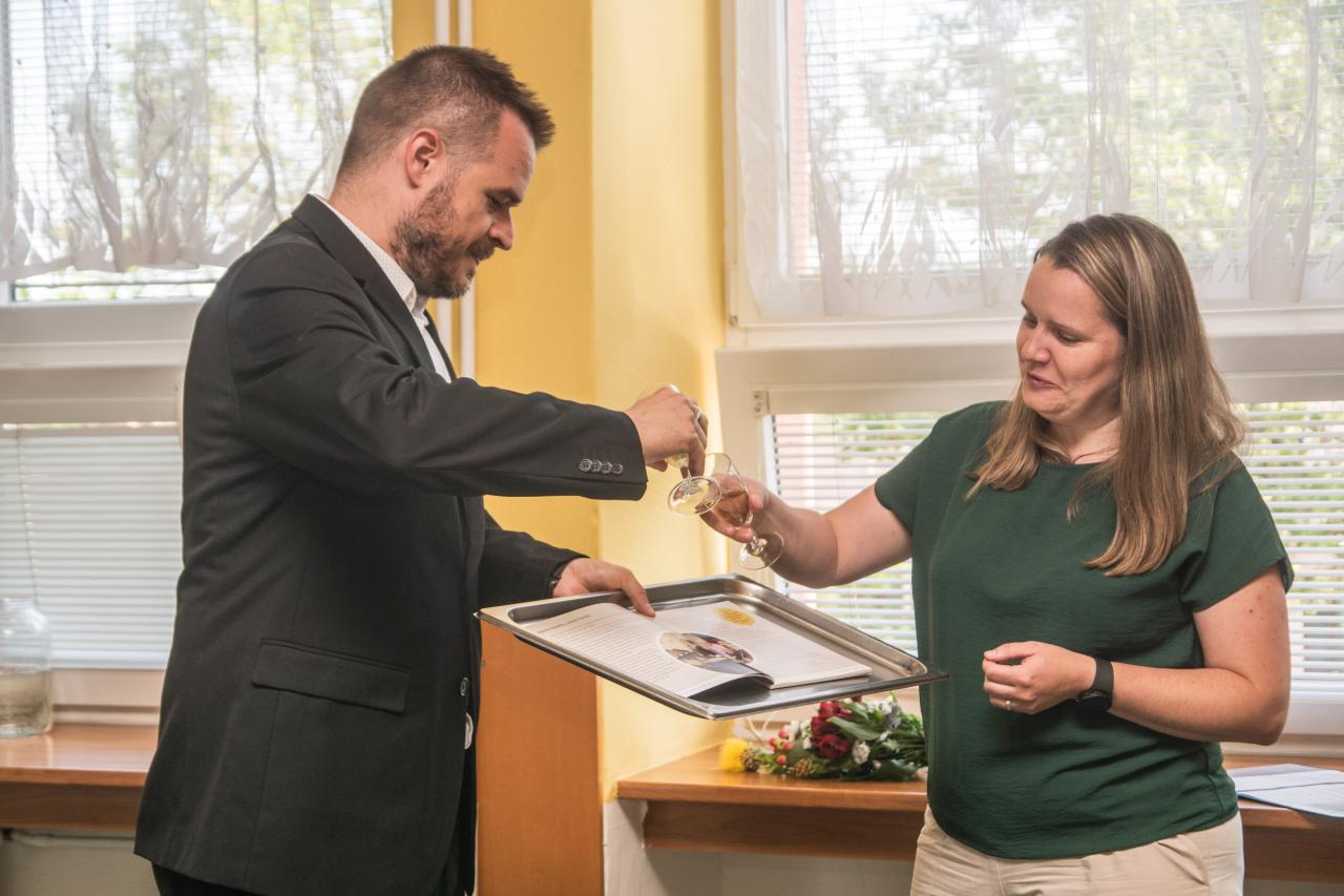 Zlatým hřebem odpoledne bylo slavnostní rozkrojení dortu ve tvaru knihy, o které se postaral pan starosta spolu s panem místostarostou. Atmosféra celého odpoledne byla velmi srdečná a přátelská – přesně taková, jaká knihovnu ve Vítkově provází po celých sto let její existence.