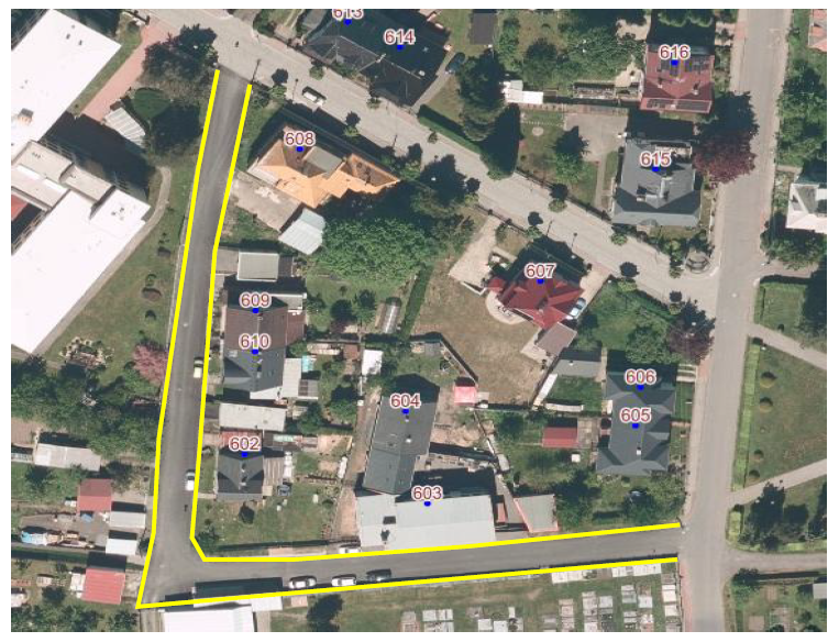 • Bezručova (od kostela kolem hřbitova a SVČ po č. p. 903)